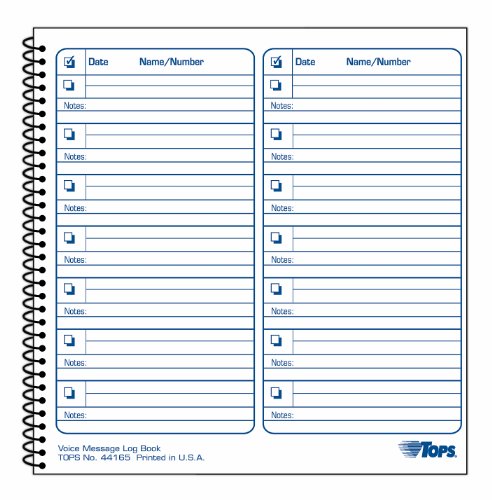 TOPS Voice Message Log/Date/Name/Number, 8.5 X 8.25 Inches, 1400-Message Book (44165) OverviewsHelps keep an accurate record of voice messages while "on the go." Cover flips back for easy writing in the car. Handy check-off box indicates returned messages. No more lost scraps of paper or notes scribbled on the back of business cards!. Form Type: Message Log, Global Product Type: Forms, Format: Log Book, Form Size (W x H): N/A..../ TOPS Voice Message Log/Date/Name/Number, 8.5 X 8.25 Inches, 1400-Message Book (44165) / BUY OFFICE DESKS
